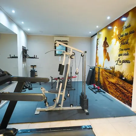 Hay un centro de fitness con una amplia gama de deportes.