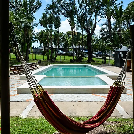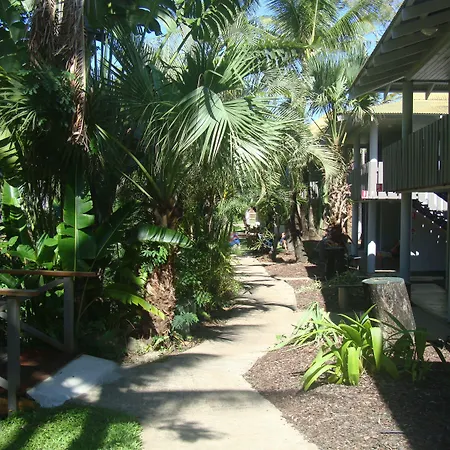 Base Airlie hostel features a tropical garden.