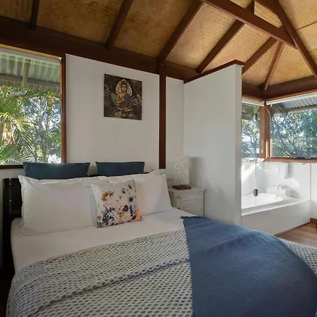 The 7-room Garden Burees Villa Byron Bay is located just 9 minutes' walk from Byron Community Market and offers a hot tub, ensuring guests a relaxing stay. The accommodation boasts massage therapy and a shared lounge, while Cape Byron Walking Track is 2.4 km away.