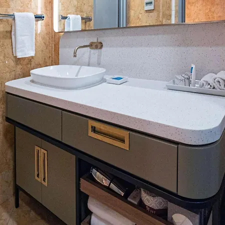 The elegant rooms comprise a seating area featuring a flat-screen TV with satellite channels along with an air conditioner. Guests will find underfloor heating and dressing gowns in the marble-tiled bathrooms fitted with underfloor heating, a separate toilet, and a lowered sink.