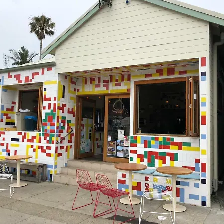 The accommodation has a fully equipped kitchen and a freezer, an oven, and a stovetop. There is Ground Up Espresso serving Australian dishes in front of this apartment.