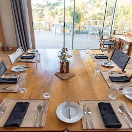 Truffle Lodge Dinner Bed Breakfast Glamping includes a dining area with coffee and tea makers, a fridge, and glassware.
