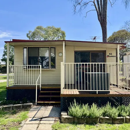 This villa features a kitchenette fitted with a fridge, an oven, and utensils. Guests can enjoy Australian dishes in Sheehan Sunnyside Bakery & Cafe, located 5 minutes' drive from Young Caravan And Tourist Park villa.