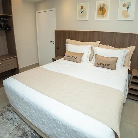 Localizado a 19 minutos a pé da Praia dos Amores, Concept Hotel Flat Balneario Camboriu 4 estrelas oferece Wi-Fi na propriedade e estacionamento privado. O Centro Comercial Praia Camboriu está localizado a apenas 1.4 km de distância.
