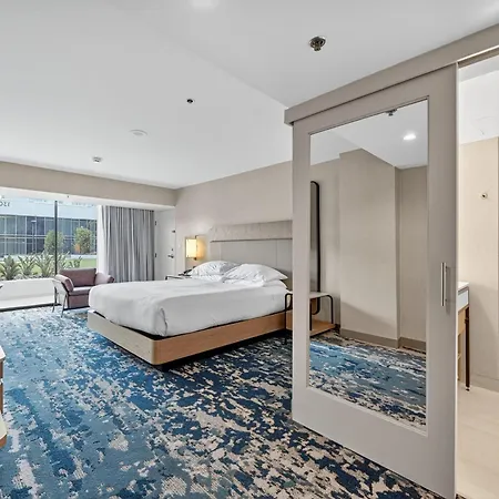 Localizado no bairro Anaheim Resort, este alojamento 3 estrelas oferece acesso a Health Club at Anaheim Hilton, que está a 150 metros. O hotel moderno se encontra a 2.5 km de Disney's California Adventure.
