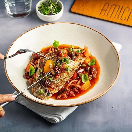O restaurante a la carte Amici recebe os hóspedes com pratos da cozinha italiana. Tem a churrascaria que serve comida brasileira a aproximadamente 400 metros de distância.