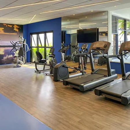 Tem centro de fitness com uma grande variedade de esportes.
