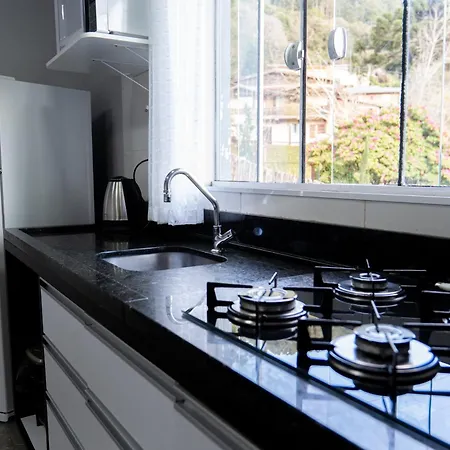 O apartamento Vista da Serra dispõe de cozinha totalmente equipada.