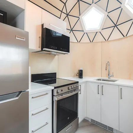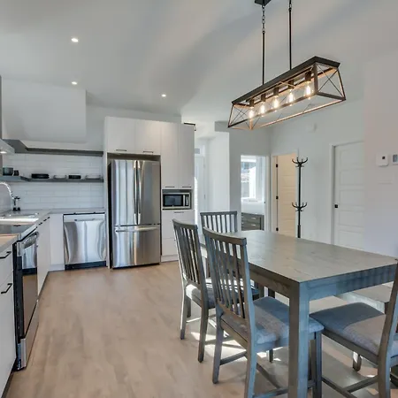 The Mont-Tremblant property is equipped with a microwave oven, an electric kettle, and a refrigerator for self-catering in a dining area.