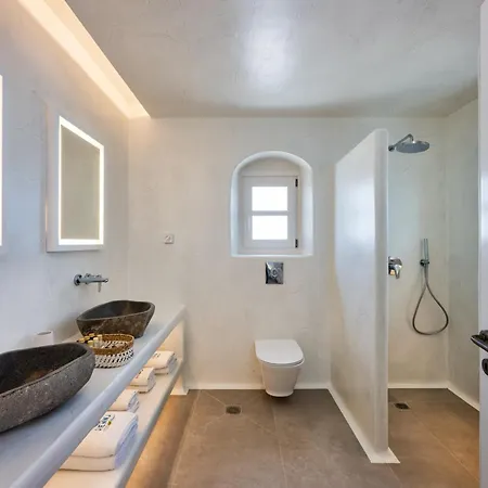 The Fira property enjoys the views of the Aegean Sea. The Fira villa comes with a bathroom with a walk-in shower and a separate toilet. Bathrooms are also featuring a hairdryer, bathrobes, and a shower cap for your comfort.