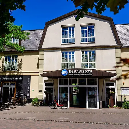 Das 4-Sterne-Hotel Best Western Wein- und Parkhotel Nierstein liegt in rund 5 Gehminuten Entfernung vom See Rhein und bietet 55 Gästezimmer. Das Hotel bietet ebenfalls WLAN im ganzen Gebäude.