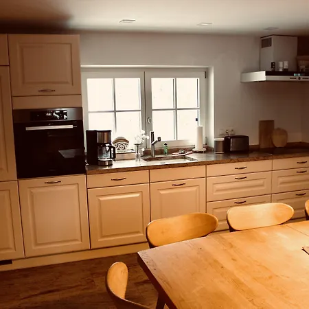 Das Apartment Zum Alten Backhaus ist mit Selbstversorgereinrichtungen ausgestattet, darunter eine komplette Küche sowie ein Essbereich, die die Gäste nutzen können.