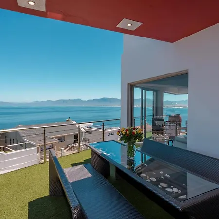 In der Villa in Gansbaai stehen Gästen eine Küche sowie ein Essbereich im Freien zur Verfügung.
