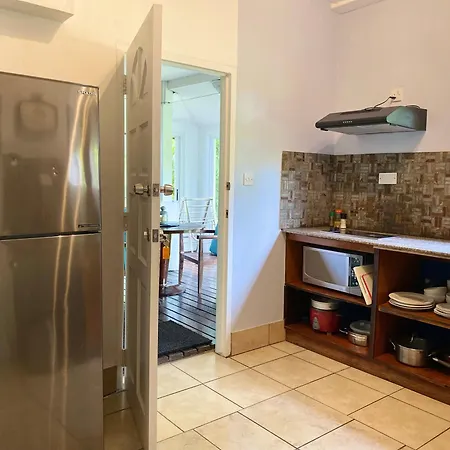 Die Gäste der Unterkunft in Anse Boileau können ihre eigenen Mahlzeiten in einer Küche zubereiten.