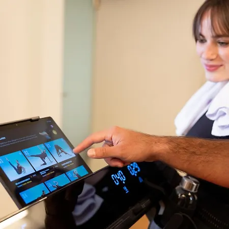 Es gibt ein Fitnesscenter mit einem breiten Sportangebot.
