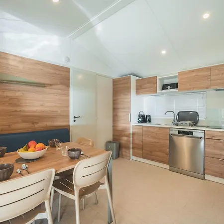 Los huéspedes pueden preparar sus propias comidas en la pequeña cocina de la Camping Le Malazéou Wellness Sport Camping.