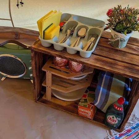 Los huéspedes pueden preparar sus propias comidas en la cocina de este camping.