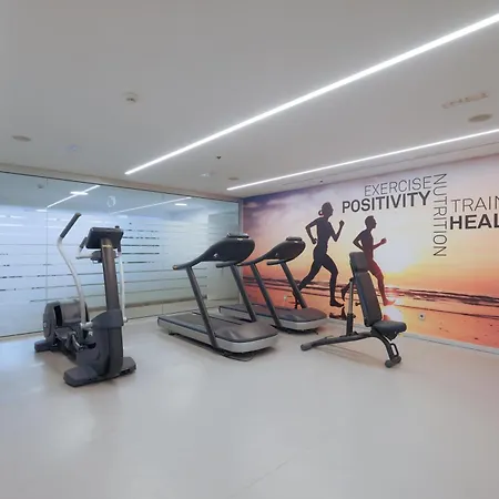 Hay un gimnasio con una amplia gama de deportes.