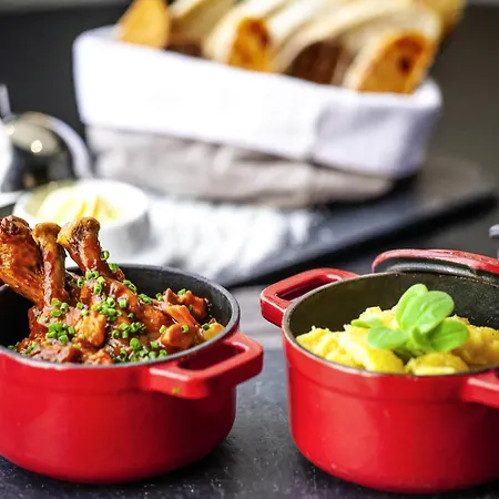 Hay platos de la cocina internacional en el menú del restaurante del hotel Novotel Basel City, GouremtBar by Novotel.
