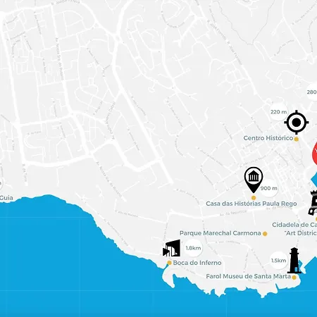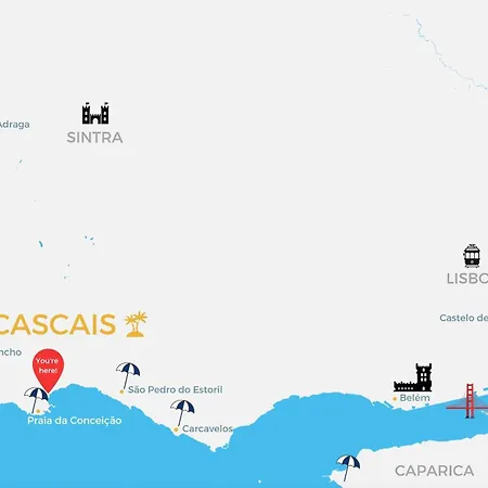 El hotel se encuentra a 15 km del aeropuerto Municipal de Cascais y a una distancia de 800 metros de atractivos culturales como el Museo del Mar Rey D. Carlos. El Suites Guest House Cascaes está situado cerca de Praia da Ribeira de Cascais y a unos minutos de los Cascaes.