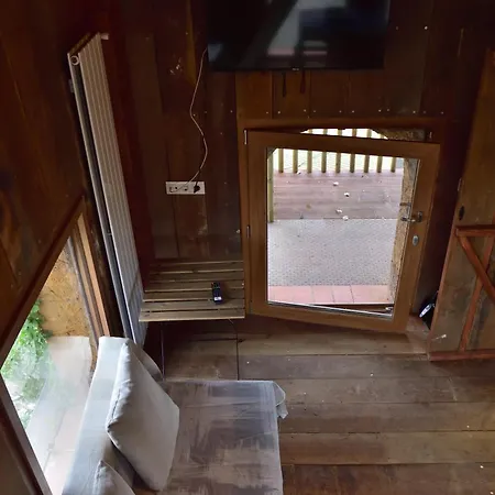 Les clients sont invités à préparer leurs repas dans une cuisine complète ou à dîner dans un coin repas extérieur.