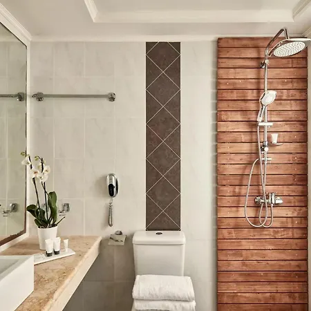 The elegant Ocean Blue has 145 rooms with a seating area. A flat-screen TV with satellite channels along with a mini fridge bar are provided. They are appointed with tiled flooring, sound-proofed windows. Offering hair dryers and bath sheets, the bathrooms also feature a tub, a separate toilet, and a shower. Guests can take advantage of views of the sea.