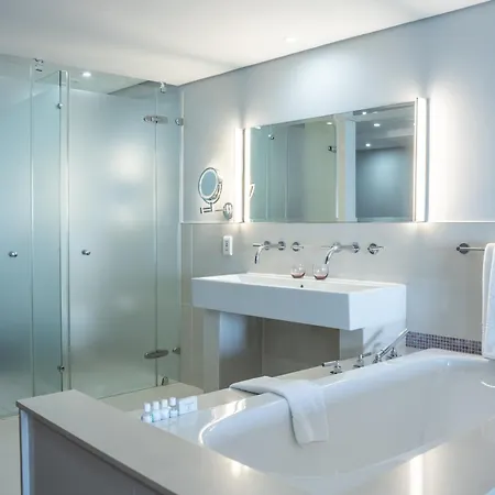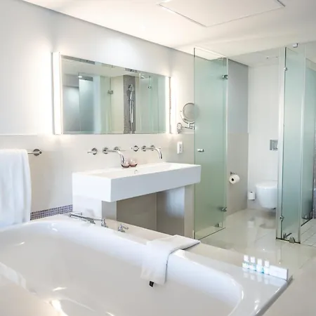 The contemporary hotel also includes an outdoor pool and a fitness area. The presence of a golf course ensures guests an active stay at the stylish Blaauwberg Beach.