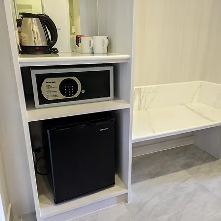 Phuket Airport Hotel - Sha Extra Plus offers 19 rooms with an iron and ironing board, and an air conditioner, as well as self-catering options such as a minibar fridge, coffee and tea makers. The bathroom features a walk-in shower and a separate toilet, along with a hair dryer and a shower cap.