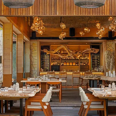 The Waldorf Astoria Maldives Ithaafushi Ithaafushi Island features 11 dining venues, including Tasting Table, the à la carte restaurant serving international dishes. Guests can relax and have a snack in the pool bar.