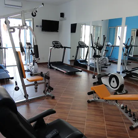 C'è un centro fitness con una vasta gamma di attività sportive.