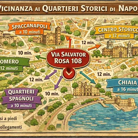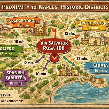 L'Hotel Salvator Rosa 108 Napoli è situato a circa 2 km dalla Cappella Sansevero e a circa 25 minuti a piedi dalla Napoli Sotterranea.