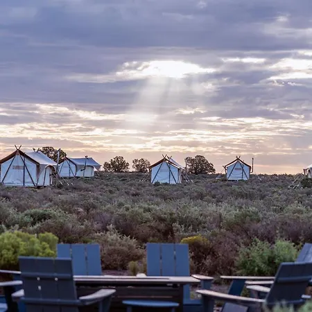 Il campeggio di lusso si trova a 16 km da Flintstone's Bedrock City.