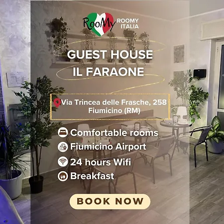 Il RooMY - Guest House Il Faraone Fiumicino, dotato di Wi-Fi in tutta la struttura, si trova a una distanza di 3 km da Domus di Amore e Psiche. Gli ospiti che soggiornano presso quest'affittacamere possono parcheggiare le loro auto nelle vicinanze.