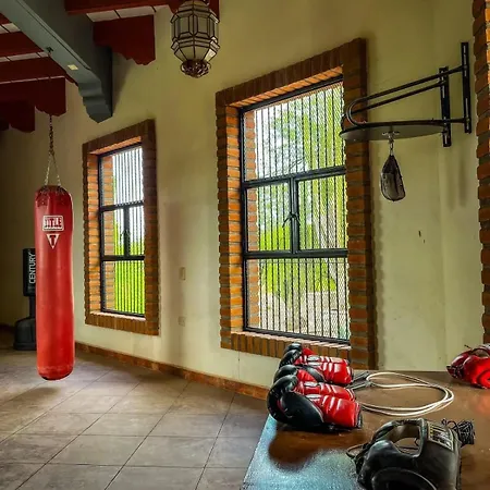 Hay un centro de fitness con una amplia gama de deportes.