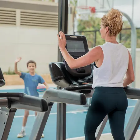 Hay un centro de fitness con una amplia gama de deportes.
