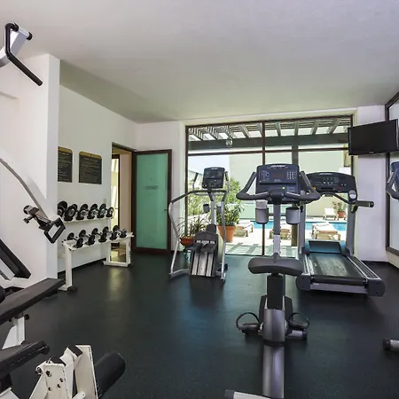 Hay un gimnasio con una amplia gama de deportes.