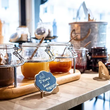De accommodatie in Sausheim biedt een selectie van Franse gerechten, geserveerd bij restaurant Latelier.